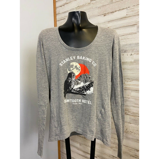 Alternative Apparel Stanley Baking Co. Sawtooth Hotel Gray LS Shirt S Owl Graphic